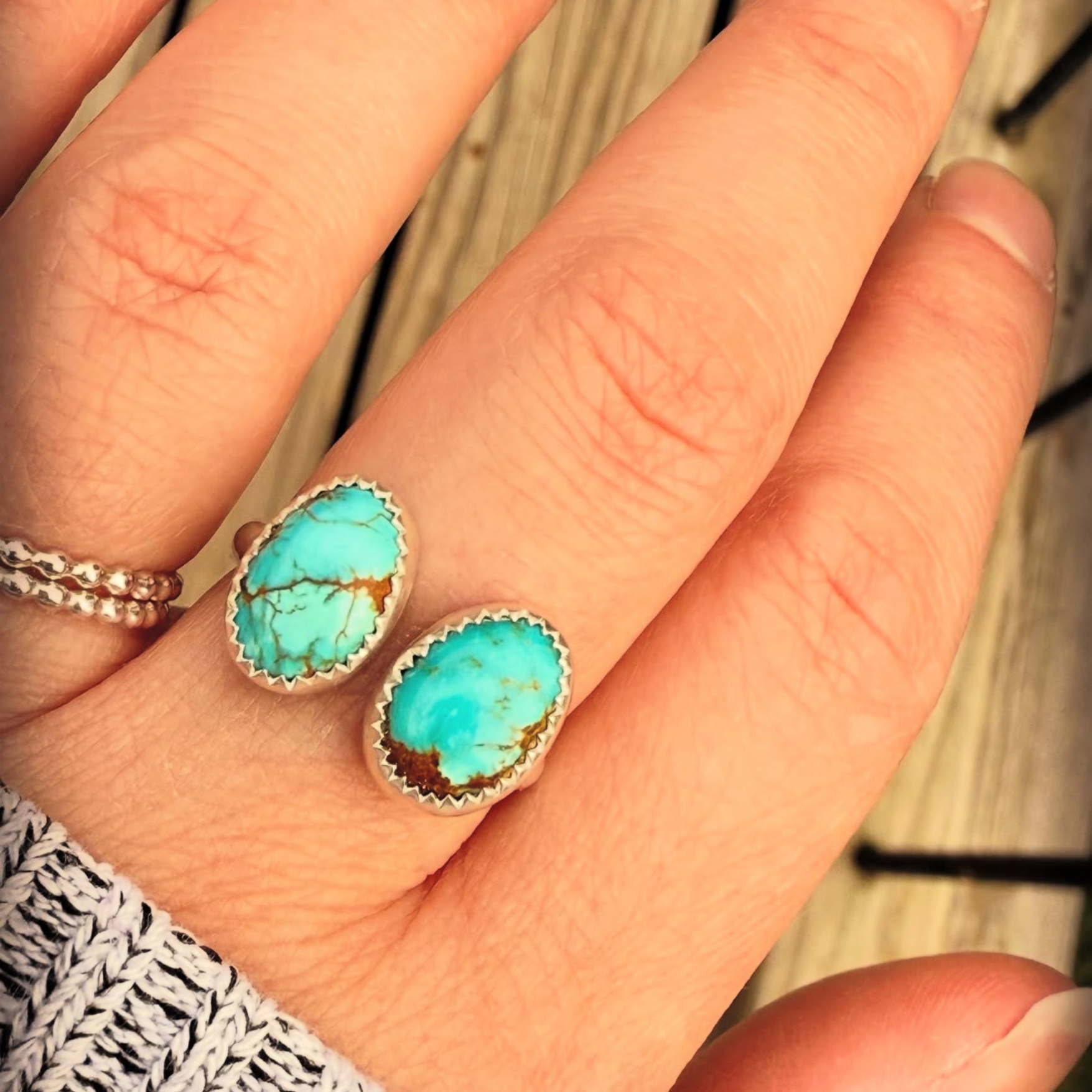Open shank ring made from Emerald Valley turquoise and sterling silver.
